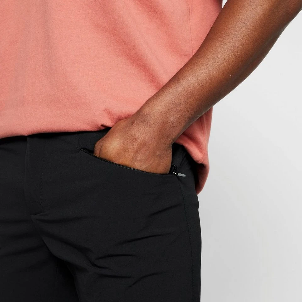 - Sleek drawcord elastic waist with front fly