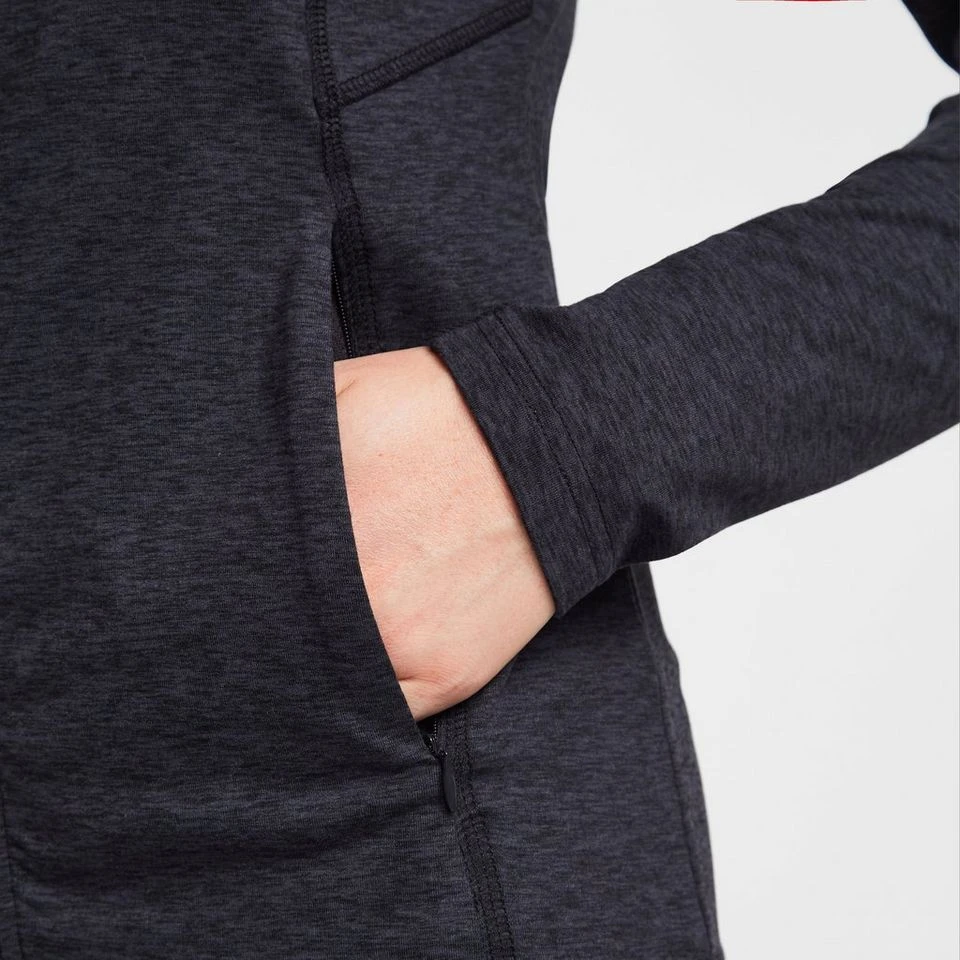The Womenâs Activity Fleece is built for high-action outdoors pursuits, performing as a lightweight, flexible midlayer under a hard shell or as a throw-on layer for post-workout warmth. The elasticated hood, cuffs and hem keep the cold at bay whilst the high face guard kicks the windchill to the sidelines.